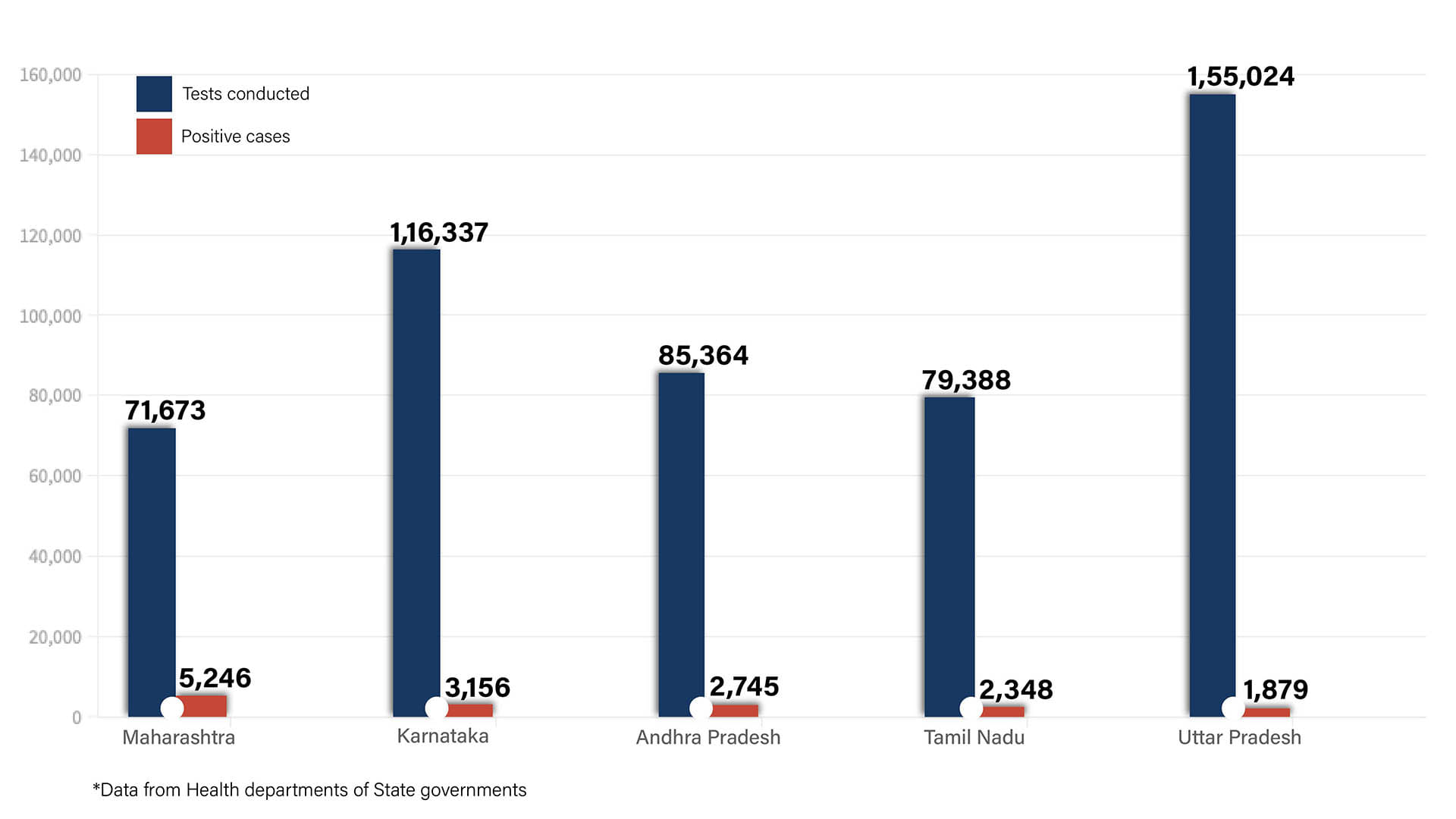 Uttar Pradesh remains the leader in testing among the high-burden states but Karnataka is also testing over 1,00,000 samples every day. Maharashtra’s positivity rate has also come down.