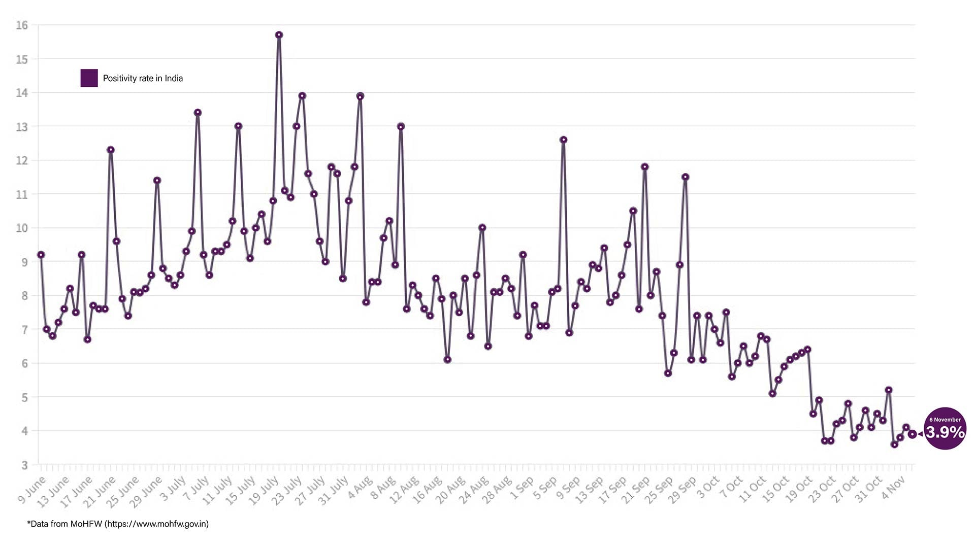 The daily positivity rate touched 3.9 per cent while the cumulative test positivity rate, which is recorded since the beginning of the pandemic, stands at 7.29 per cent. The weekly positivity rate is around 4.4 per cent.