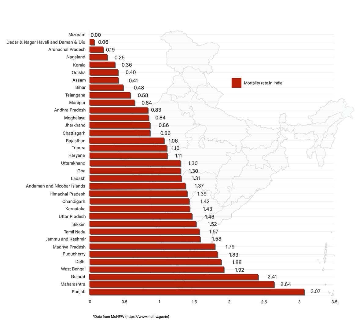 Punjab continues to report the highest case fatality rate (CFR) in the country at 3.07. Maharashtra and Gujarat are also reporting high CFR — 2.64 and 2.41, respectively. Meanwhile, Kerala, the state that has the third-highest number of active cases, has a very low CFR of 0.36. India’s overall CFR is 1.54.