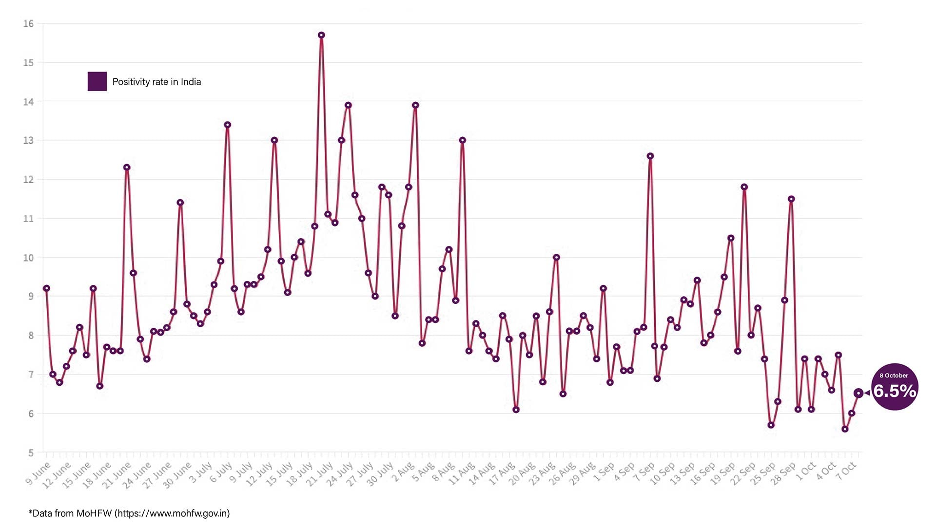 This comes just two days after the positivity rate saw a three-month low of 5.6 per cent, earlier this week.