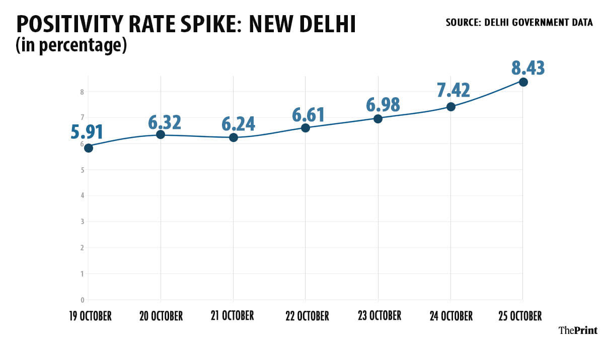 Between 19 October and 25 October, while daily cases rose from 2,154 to 4,136, the positivity rate also increased to 8.43 per cent from 5.91 per cent.