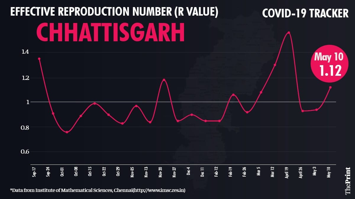 “Chhattisgarh, whose number of active cases had seemed to have peaked and was going downhill (so that R had become less than 1) has again had its R become greater than 1,” he said.