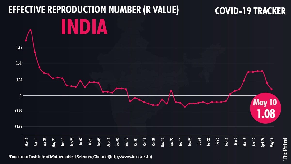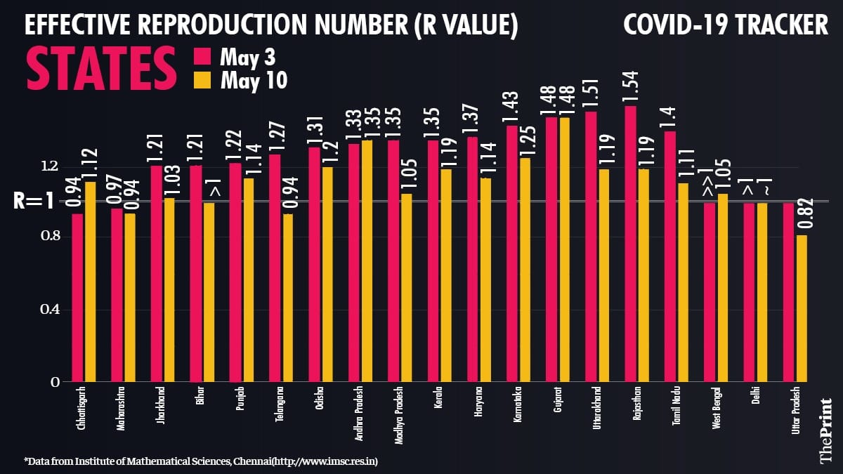 For example, the R value for UP which was at 1.84 around April 26, has now reduced to 0.82. Bihar, which had R at 1.97 around April 19, now has R very close to 1. Similarly, Jharkhand, which had R close to 1.72 around April 26, now has R at 1.03.