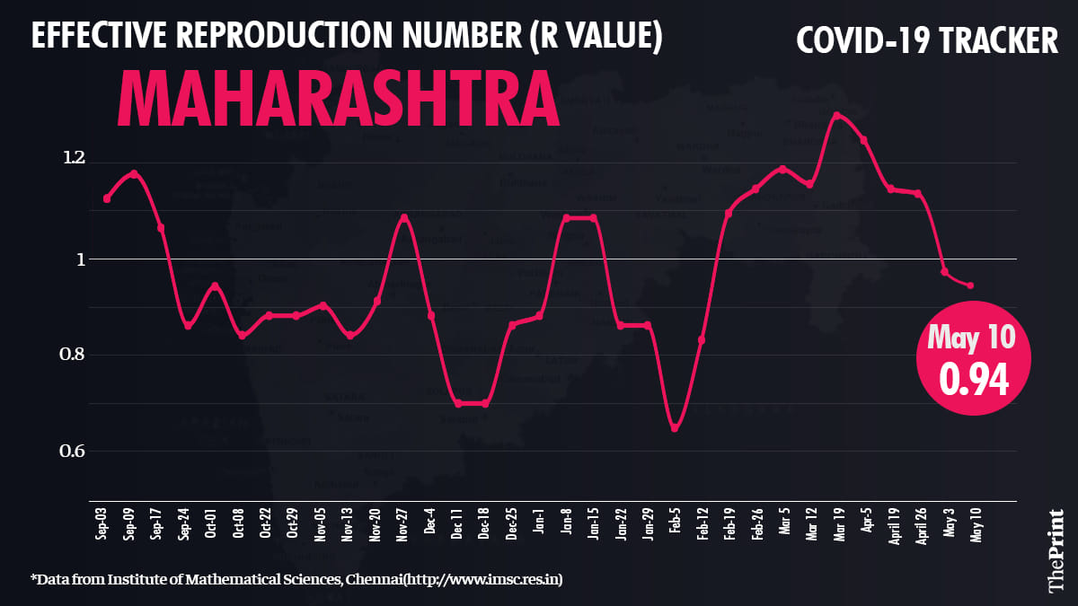 In Maharashtra, R has dropped to 0.94 from 0.97 last week.