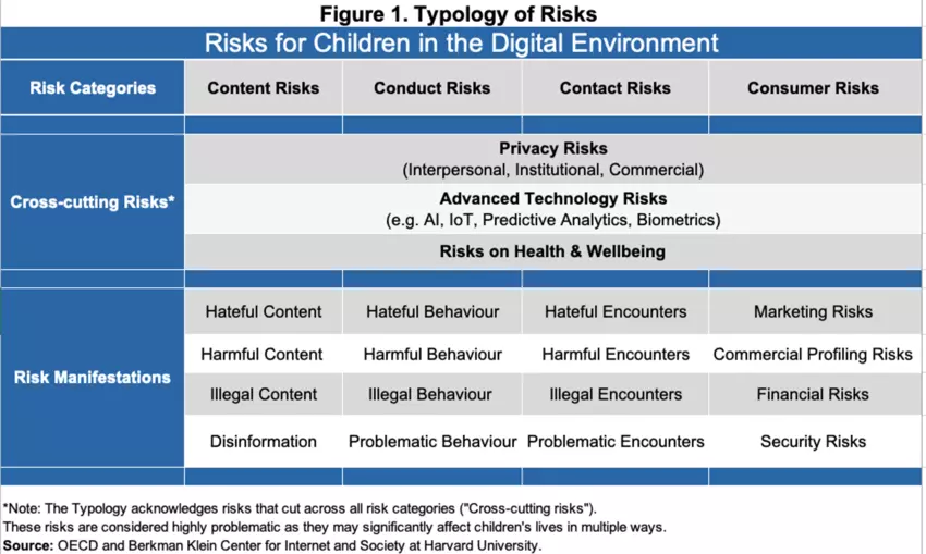 The OECD Typology of Risks provides a practical examination of emerging risks that parents, educators and children should be made aware of. Simplified, these are: