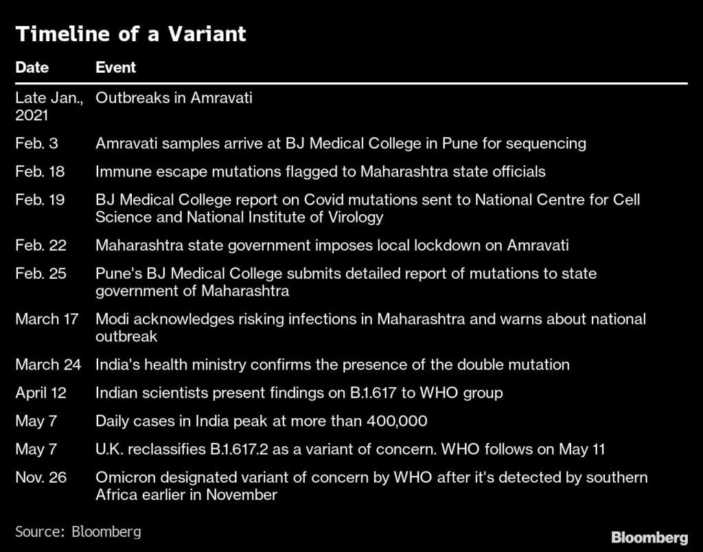 A former official Bloomberg spoke to said they were flummoxed at why it took so long to make knowledge of the variant public. Two weeks in a pandemic is a lifetime, the person said. But other scientists claim it wasn’t clear then that the strain was indeed the cause of what was fast becoming a nationwide jump in infections: By the end of March, India was seeing more than 60,000 cases a day, from less than 15,000 a month earlier.