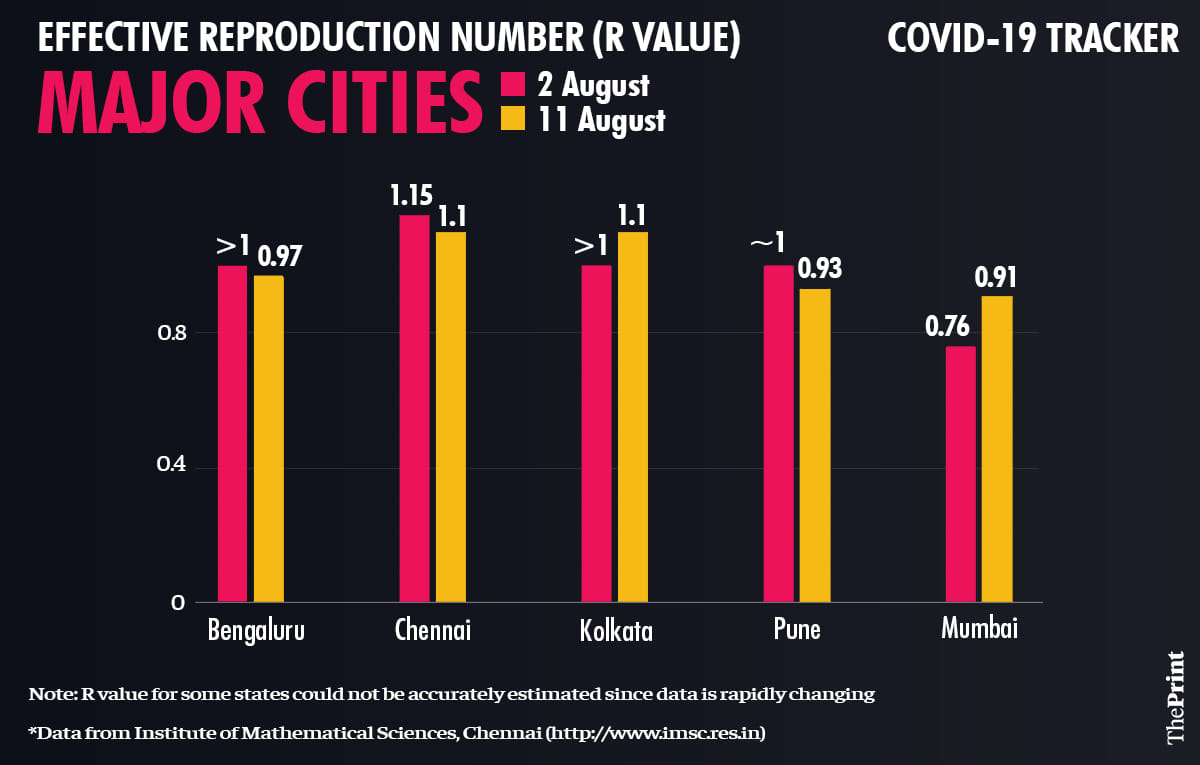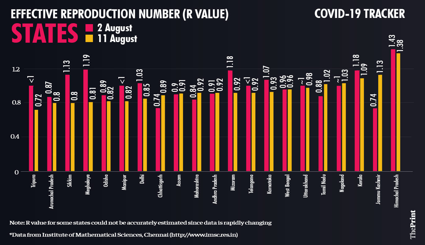 “After the scare at the beginning of month when R for India went above 1 for the first time after early May, things seem to have improved somewhat,” Sitabhra Sinha, a researcher at the Institute of Mathematical Sciences in Chennai who has been tracking R for India since the beginning of the pandemic, told ThePrint.