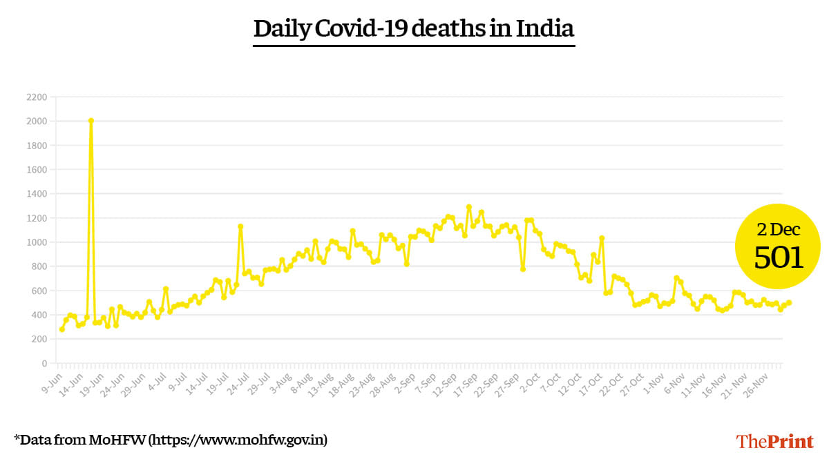 The number of Covid-19 deaths reported across India in the last 24 hours was 501, which has brought the total reported deaths in the country, since the beginning of the pandemic, to 1,38,122.