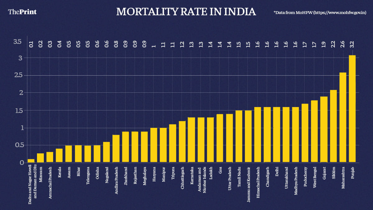 With a case fatality rate of 3.2 per cent, Punjab continues to have the highest death rate in the country. Maharashtra — which has recorded the highest number of deaths in the country — has the second-highest CFR at 2.6 per cent.