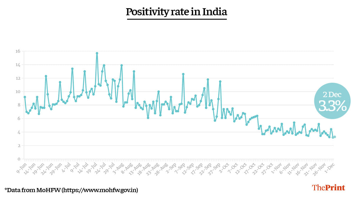 The overall TPR for India, calculated since the beginning of the pandemic, has reduced to 6.6 per cent.
