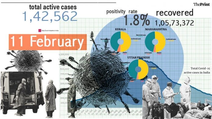 In the last 24 hours, 11,764 Covid-19 patients were discharged across India. This brings the total number of recoveries since the beginning of the pandemic to 1,05,73,372.