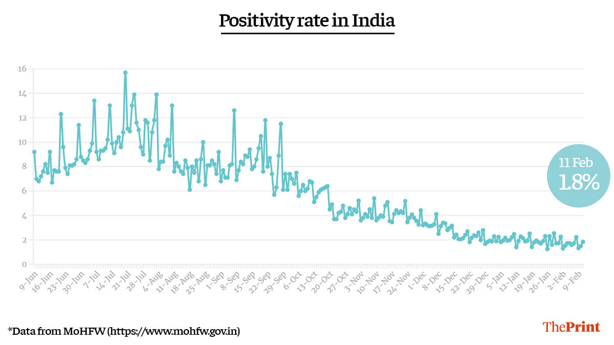 The test positivity rate for India has increased to 1.8 per cent. The overall positivity rate, calculated since the beginning of the pandemic, is 5.3 per cent.