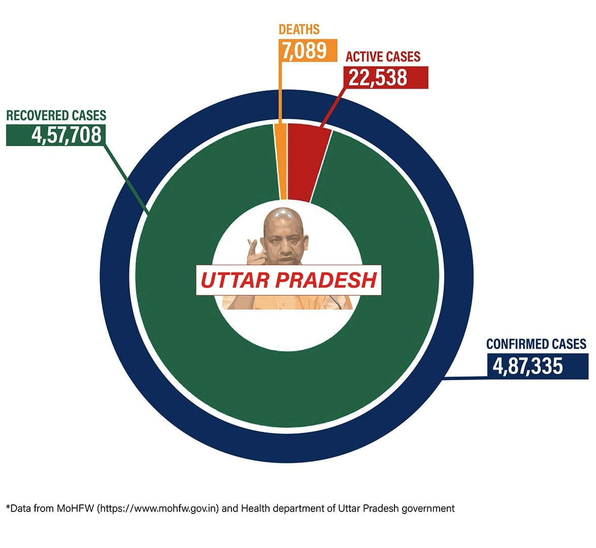 In Uttar Pradesh, 1,948 new Covid cases have been detected in the last 24 hours, bringing the total number of positive cases so far in the state to 4,87,335. Of these, 22,538 cases are currently active.