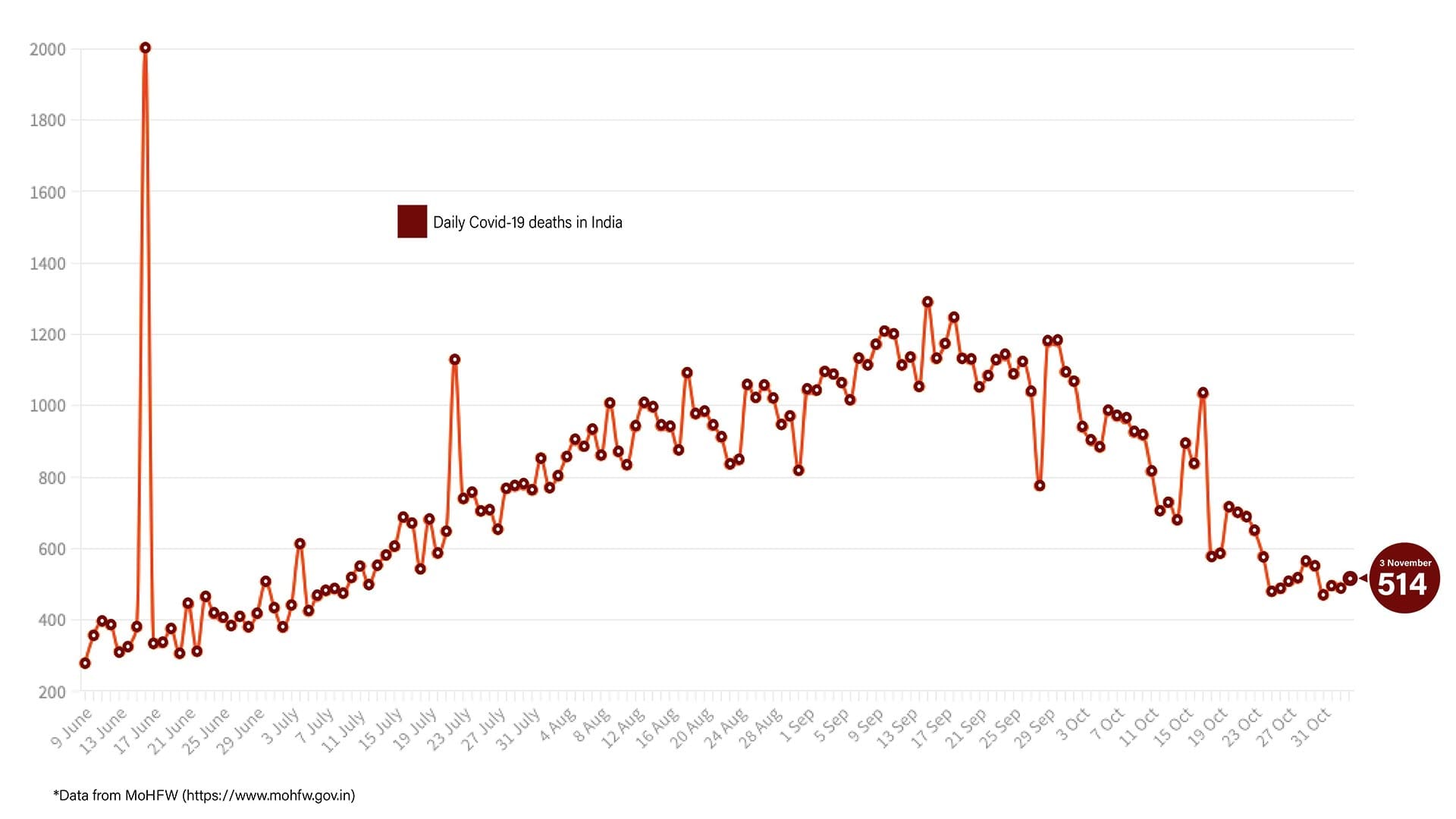 The number of deaths reported in the last 24 hours rose above 500, with a total of 514 deaths recorded. Since the beginning of the pandemic, 1,23,611 people succumbed to Covid-19, which is a little over 10 per cent of the total deaths in the world.