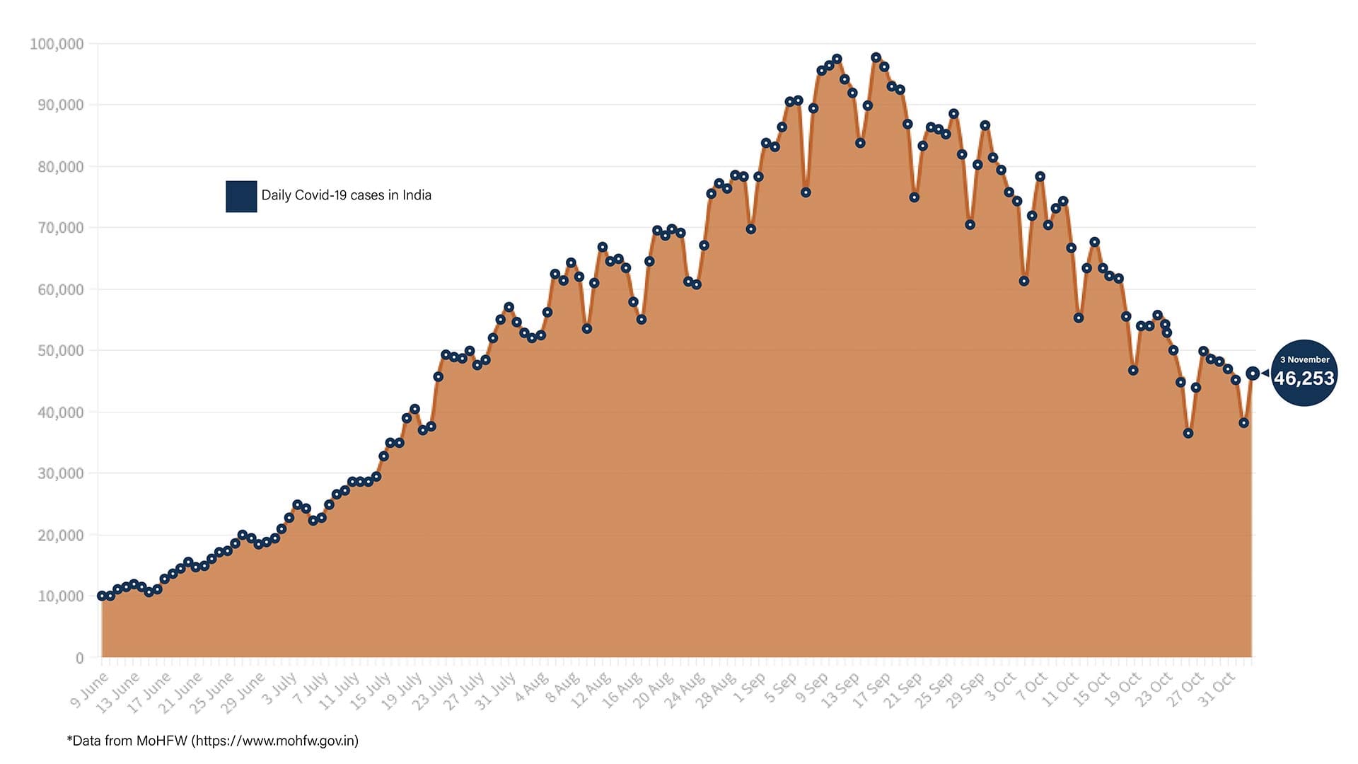 India has recorded a total of 83,13,876 cases of Covid-19 since the beginning of the pandemic. It is the second worst-affected country in the world after the US.