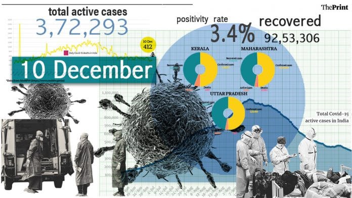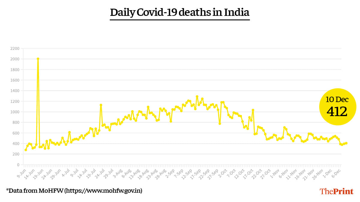 The number of Covid deaths reported across the country over the last 24 hours increased to 412. This has brought the total death toll in India to 1,41,772.