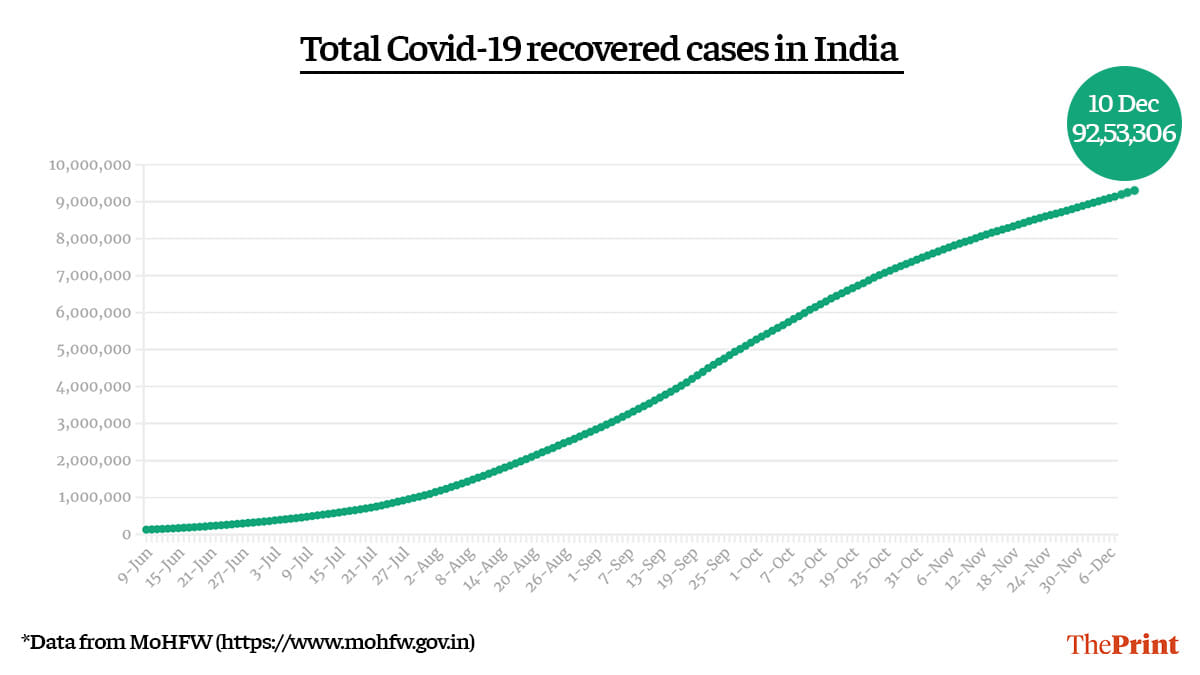 As many as 37,725 Covid-19 patients were discharged across India in the last 24 hours. Since the beginning of the pandemic, 92,53,306 people in India have recovered from the Covid-19 pandemic.