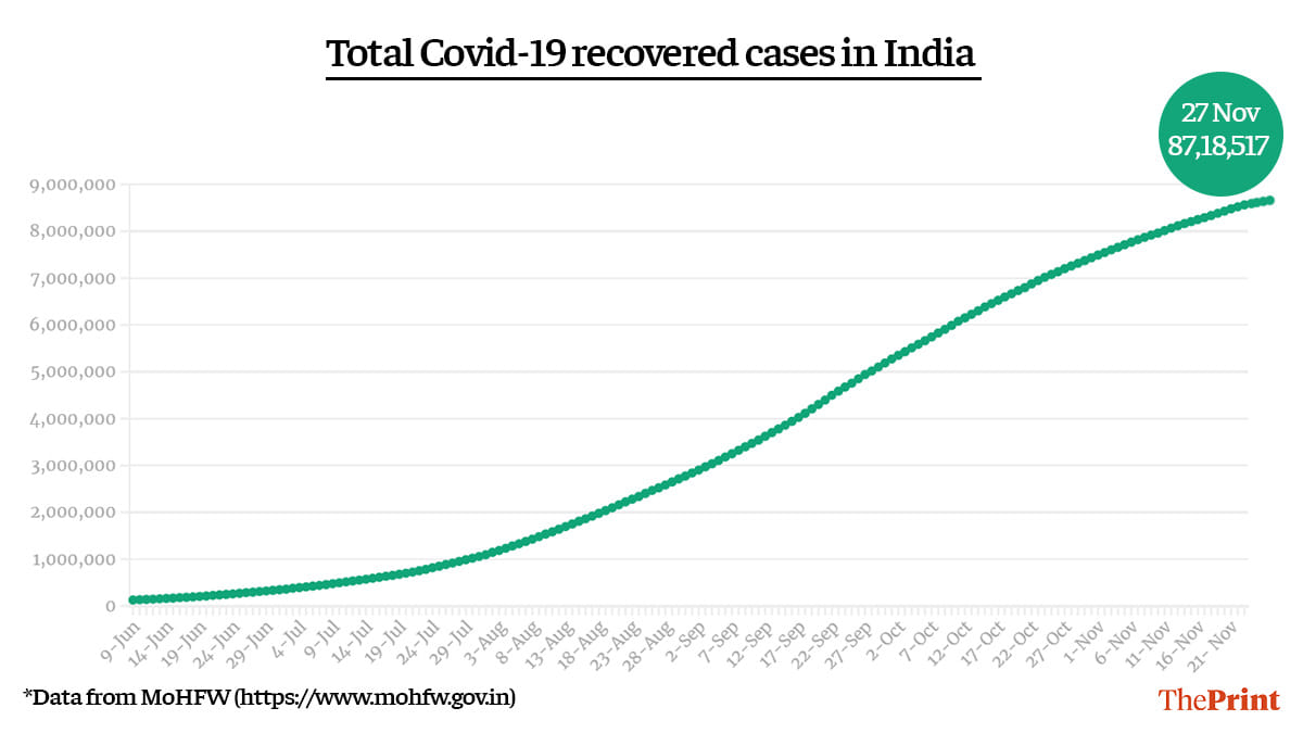 87,18,517 people have recovered in India since the beginning of the pandemic. The national recovery rate stood at 93.65 per cent. In the last 24 hours, 36,379 recoveries have been reported.