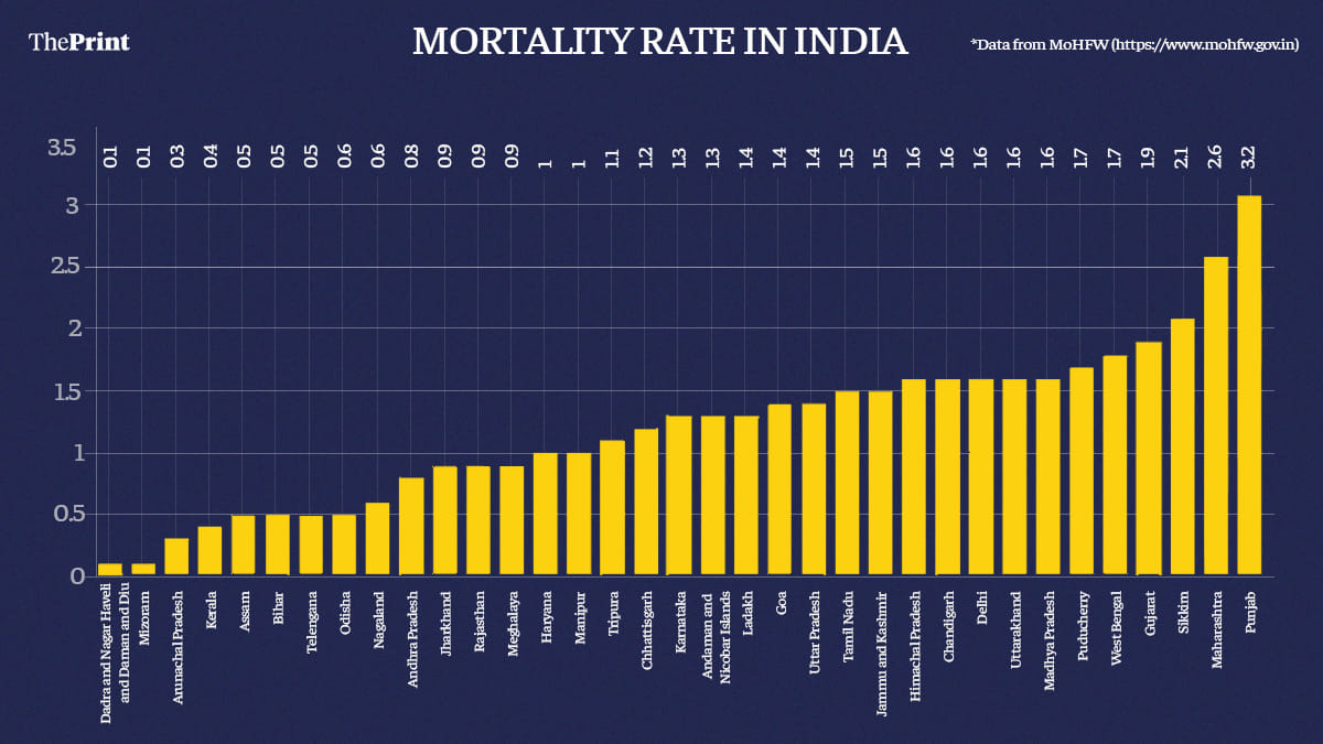 Punjab continues to record the highest case fatality rate in India at 3.2 per cent. This is followed by Maharashtra at 2.6 per cent and Sikkim at 2.1 per cent.