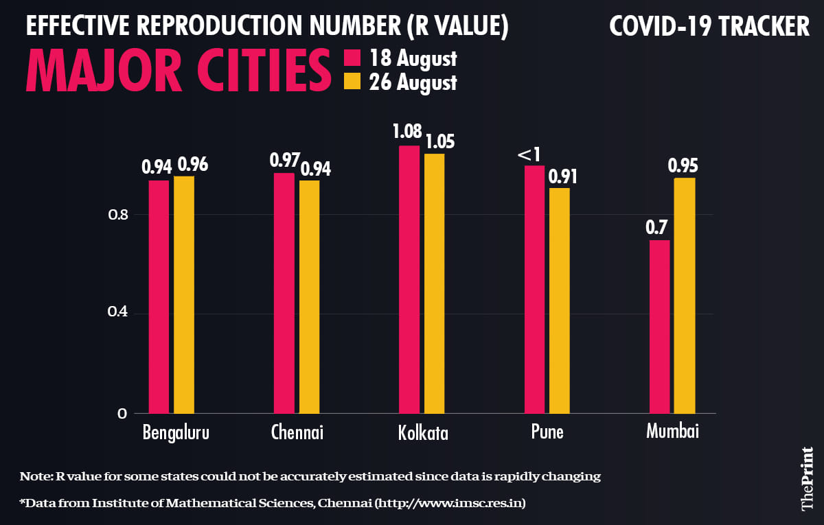 Kolkata still has R over 1, although the value has decreased slightly to 1.05 this week from last week’s 1.08.