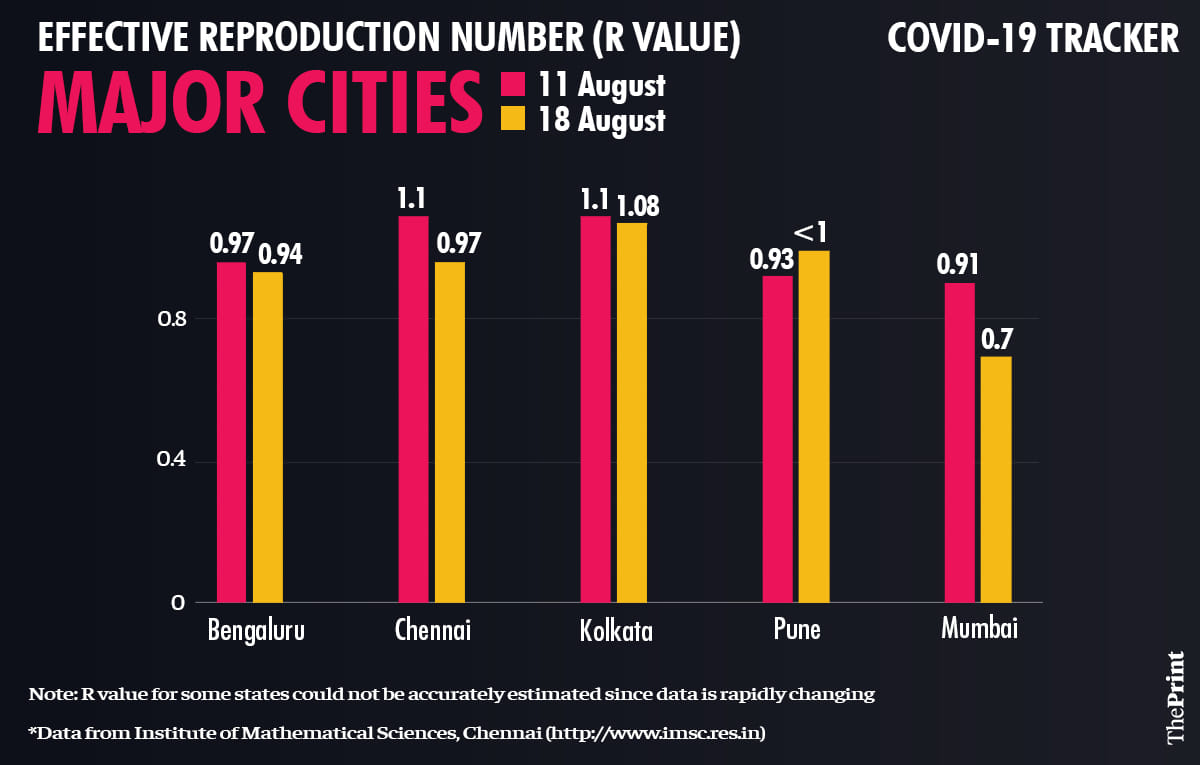 However, Kolkata’s R remains over 1 at 1.08 this week. There has also been a slight increase in the R value of Pune, which is close to 1 this week from 0.93 last week.