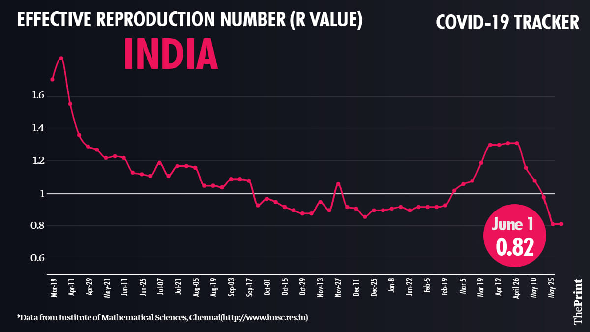 New Delhi: India’s Covid-19 effective reproduction number or R value — an indicator of how fast the epidemic is spreading — continues to be 0.82, the same as last week.