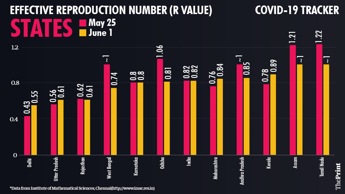 Both Assam and Tamil Nadu had R above 1 last week, but have now seen it come close to 1.