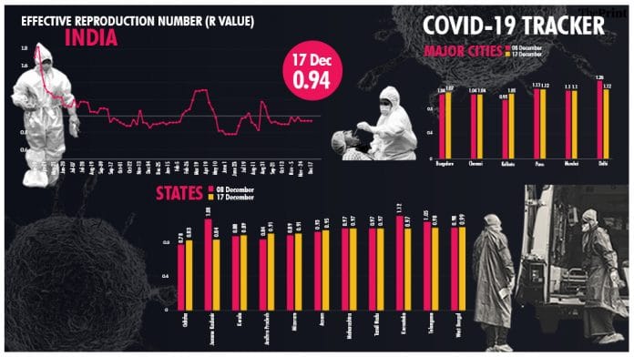 New Delhi: India’s effective reproduction number or R for Covid — an indicator of how fast the infection is spreading — continues to remain steady at 0.94.