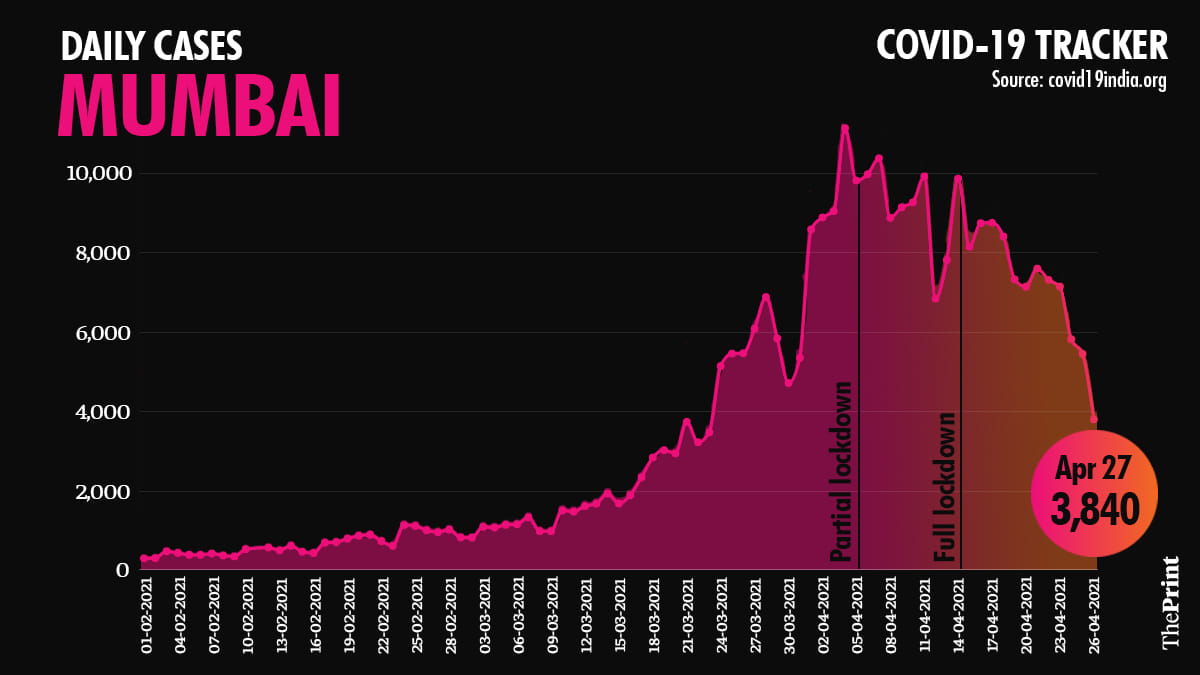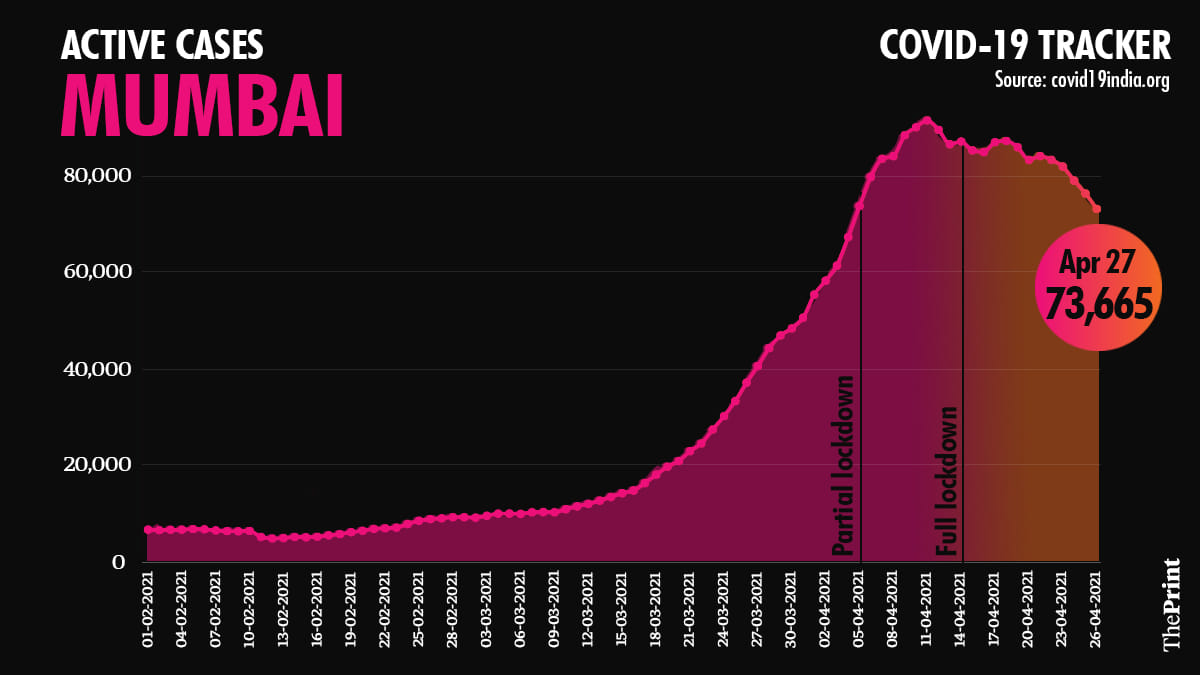 After complete lockdown was announced in Mumbai, daily cases reduced further and active cases fell too.