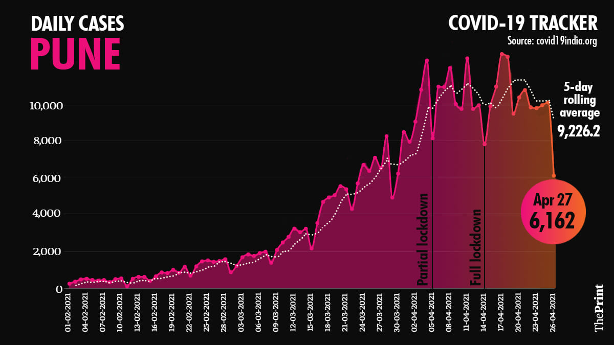 Pune recorded 1,00,032 active cases as of Tuesday. Since 5 April, the average daily cases seem to have plateaued — although the numbers are still fluctuating to make definitive conclusions.