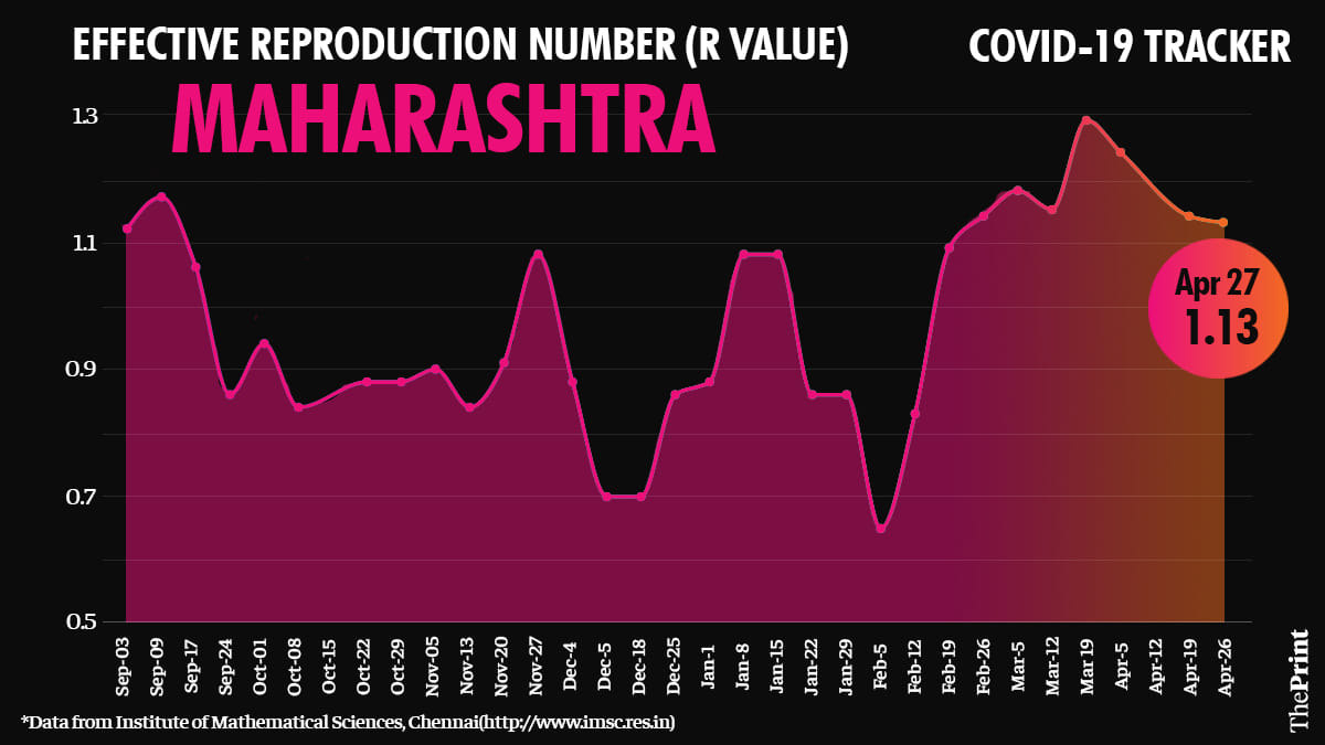 New Delhi: The phased lockdown in Maharashtra since 5 April has not only helped bring down the number of daily Covid-19 cases in the city of Mumbai, but has also reduced the R value for the entire state.