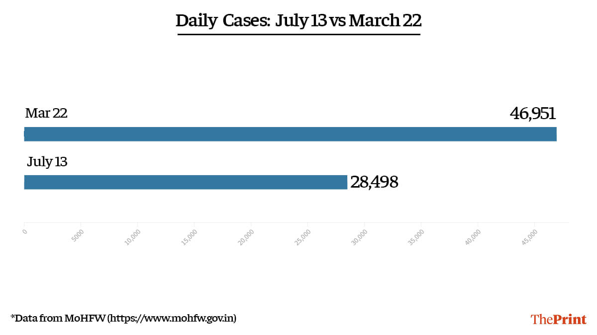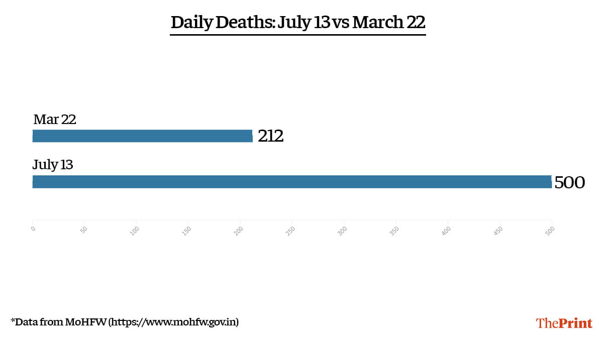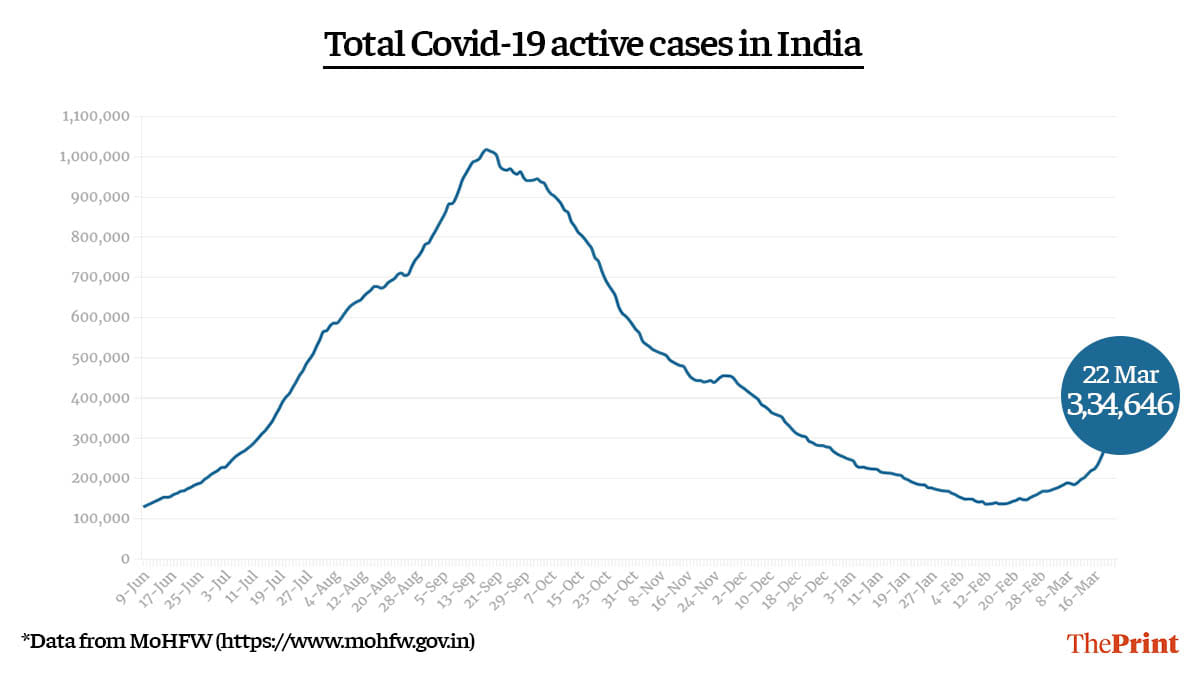 New Delhi: As active number of cases in India crossed 3.3 lakh Monday, ThePrint compares the current situation to July last year when active cases had crossed 3 lakh for the first time.