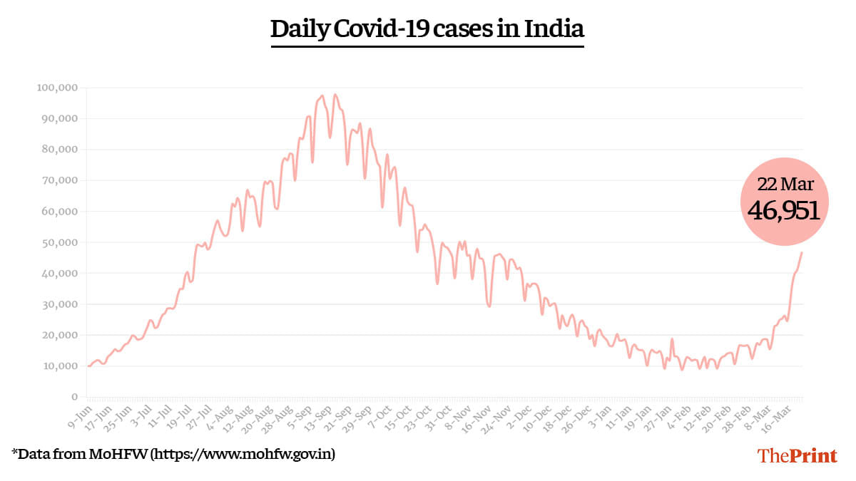 Since yesterday, 46,951 new cases of Covid-19 have been reported across the country — the highest since 22 July. Maharashtra continues to report the highest number of new cases every day.