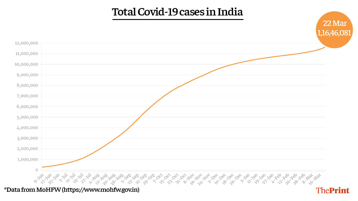 As many as 1,16,46,081 people in India have been infected with Covid-19 since the beginning of the pandemic. The largest number of cases so far have been reported from Maharashtra, followed by Kerala and Karnataka.