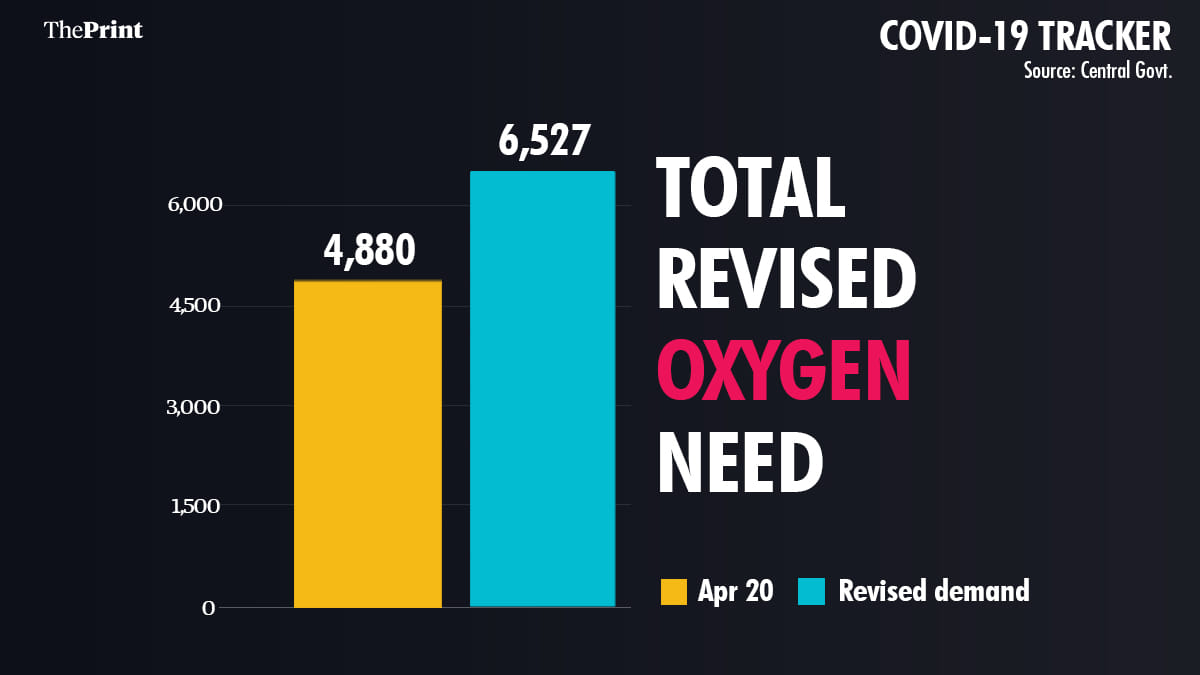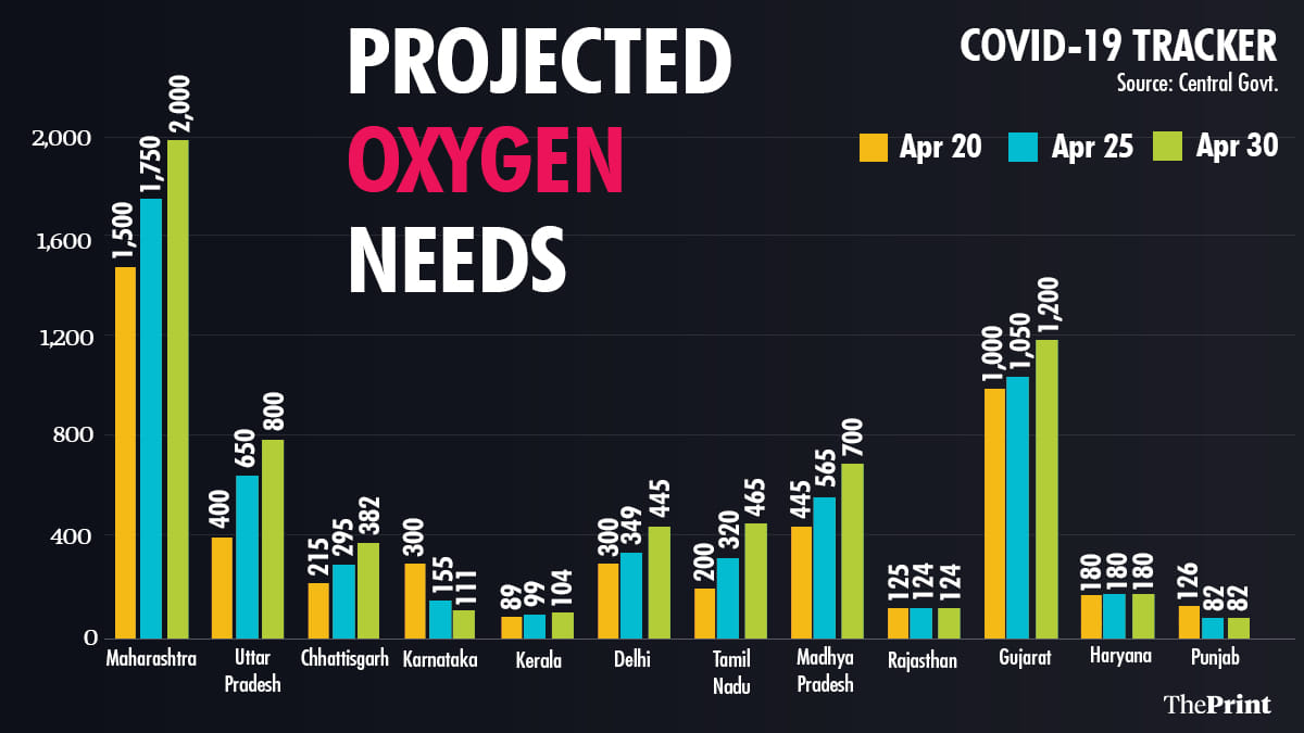 The Delhi government projected that it would need 300 metric tonnes (MT) of oxygen daily by 20 April, 349 MT by 25 April, and 445 MT by 30 April.