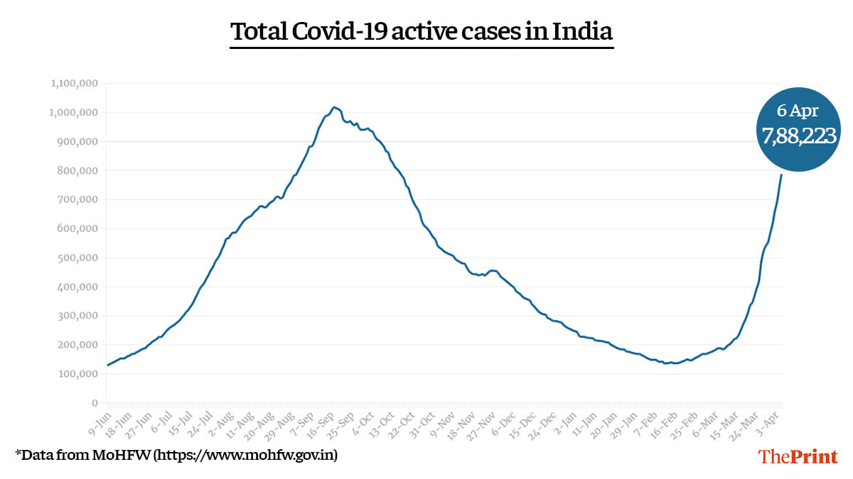 Active cases in India increased to 7,88,223 — the highest since October. Maharashtra continues to have the highest share of active cases in the country while Chhattisgarh now has the second-highest active cases in the country.