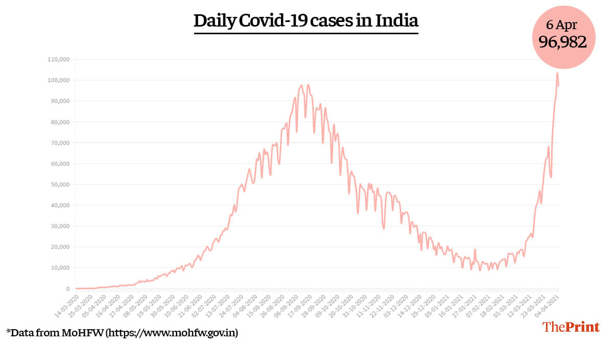In the last 24 hours, 96,982 people tested positive for Covid-19 across the country. More than 48 per cent of the new cases were from Maharashtra.