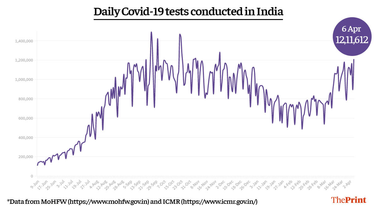 In the last 24 hours, 12,11,612 Covid tests were carried out across 1,228 government and 1,215 private laboratories in the country. Over 25 crore tests have been carried out in the country since the pandemic began.