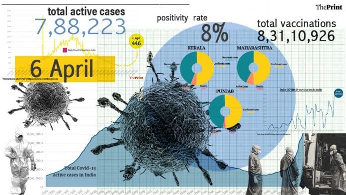 Active cases in India increased to 7,88,223 — the highest since October. Maharashtra continues to have the highest share of active cases in the country while Chhattisgarh now has the second-highest active cases in the country.
