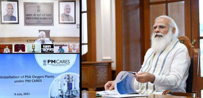 PSA oxygen plants, contributed by the PM CARES fund, are coming up in all states and districts of the country, and Modi was told that they will support more than 4 lakh oxygenated beds once functional, the PMO said.