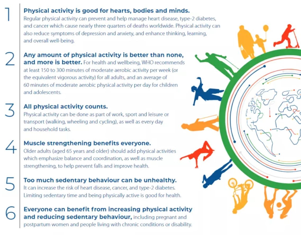From reducing the amount of time we sit still, to including strengthening exercises, here are the main things to know from the WHO for everyone: