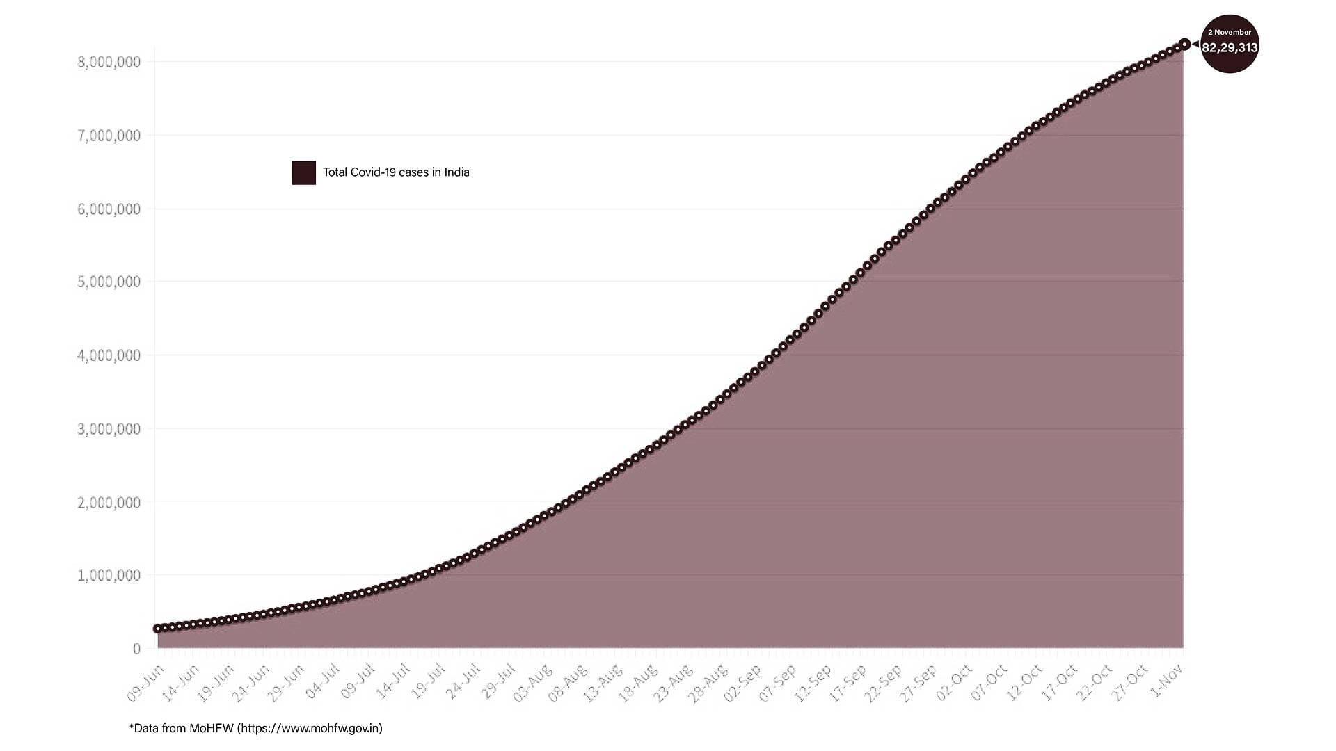 A total of 82,29,313 cases of coronavirus have been recorded in India, so far. This accounts for over 17.5 per cent of the total Covid cases across the world.