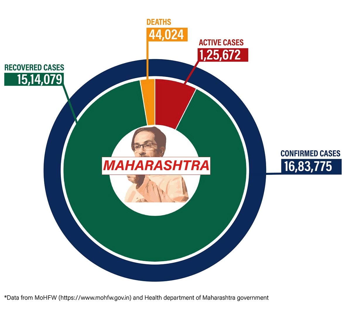 Maharashtra has the highest burden of Covid cases in the country — it has reported 16,83,775 cases, so far. Of these, 1,25,672 cases are active, while 44,024 people died from disease in the state.
