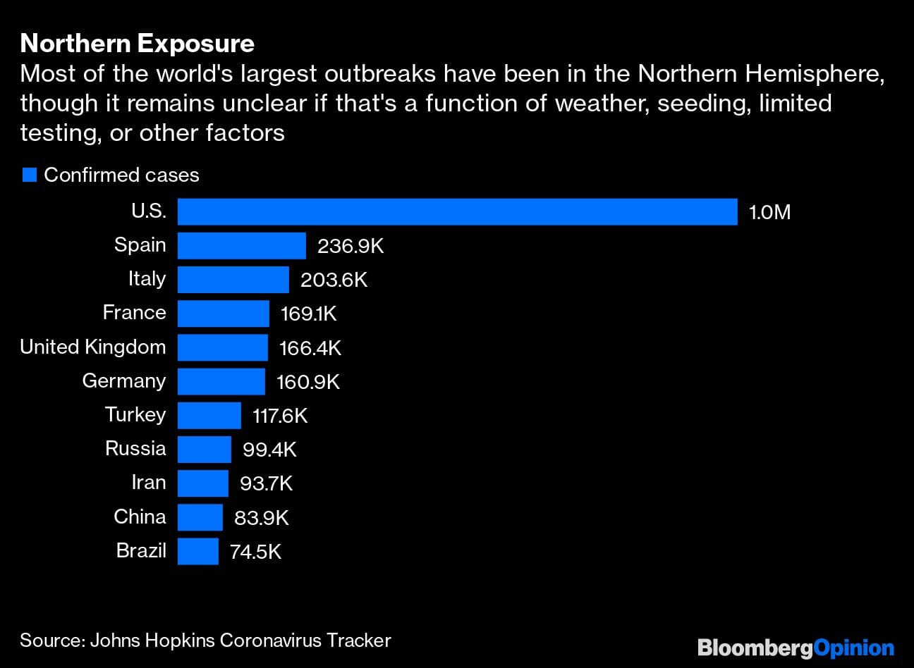 Seasonality may nevertheless at least limit the size of any post-lockdown rebound. New outbreaks in the Northern Hemisphere this summer could be smaller, and that would buy valuable time to make progress on testing, developing treatments and reinforcing health systems. On the other hand, it could also mean that the virus begins to spread more rapidly in the Southern Hemisphere, and that later outbreaks in the fall and winter will be especially acute in places where people neglect to take appropriate precautions.