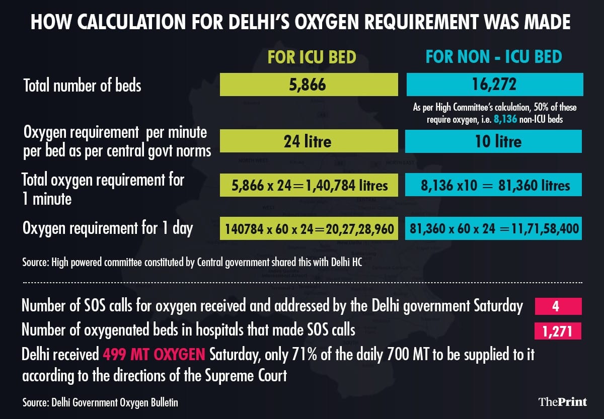 New Delhi: The Delhi government didn’t account for the oxygen requirements of Covid patients in home isolation, and only took hospital beds into count, and thus got its entire quota calculation wrong amid the second wave, ThePrint has learnt.