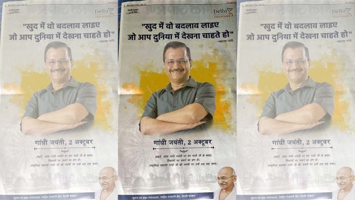 New Delhi: A purported Aam Aadmi Party poster to celebrate Gandhi Jayanti, featuring Delhi Chief Minister Arvind Kejriwal prominently and a small photograph of Mahatma Gandhi in the corner, has gone viral on social media.