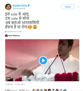 In the same speech, while mocking Modi, Gandhi says: “I will give you farm land on moon and you can grow potatoes there also.”