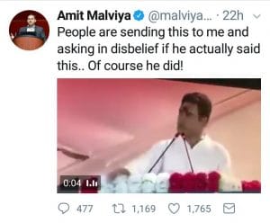 New Delhi: A video doing the rounds on social media mocking Congress vice-president Rahul Gandhi may not be an entirely accurate representation of what he said while on the campaign trail in Gujarat.