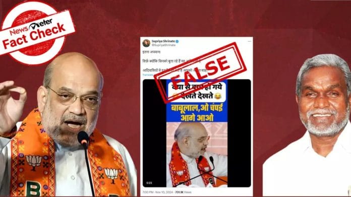 Through a reverse image search, we found a report from Republic World, published on 3 November, and titled ‘“Aage Aao…”: Amit Shah Motivates Babulal Marandi, Champai Soren To Come Forward On Stage’