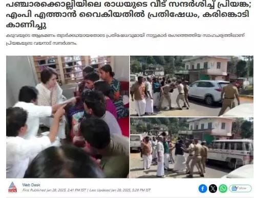 A similar image was also found in an Asianet News report published on January 28, covering Priyanka’s visit and the protests over her late arrival. This further confirms that the viral news card was altered by superimposing an unrelated image over the original card.
